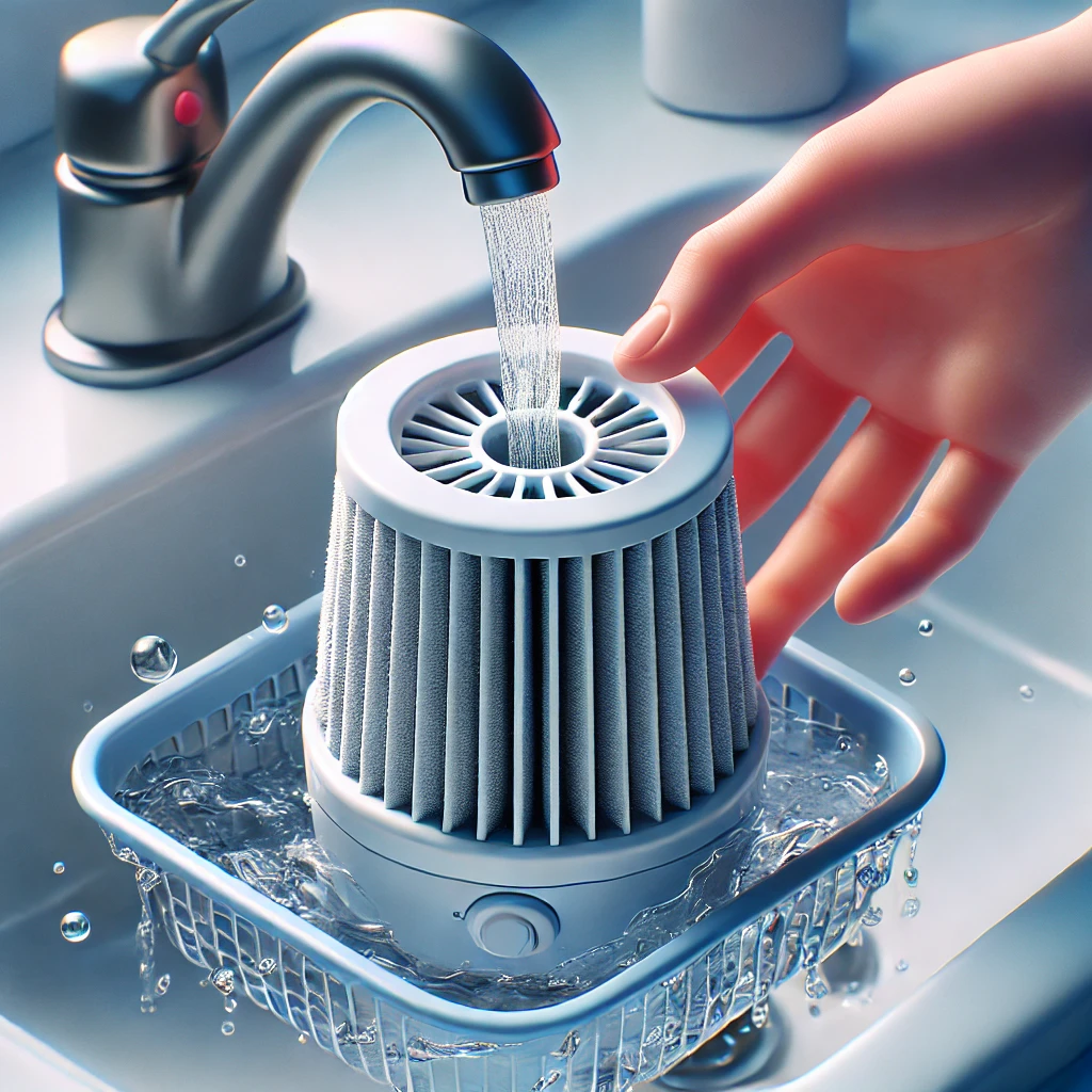 - 필터를 분리하여 흐르는 물에 충분히 씻어줍니다.