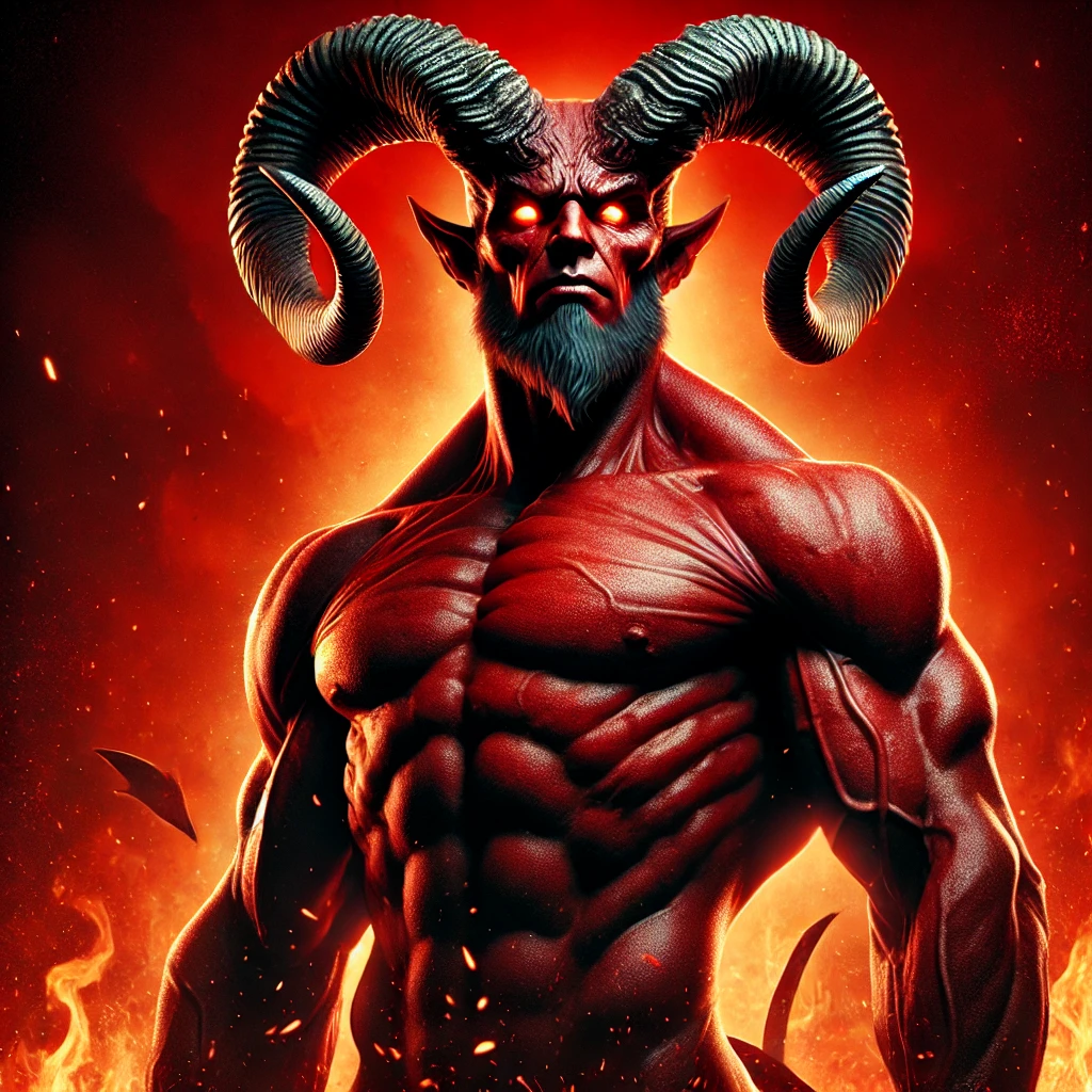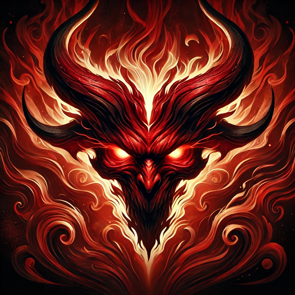 데빌은 보통 거대한 뿔과 날개를 가지고 있으며, 이는 권위와 공포를 상징합니다. - 불타는 눈