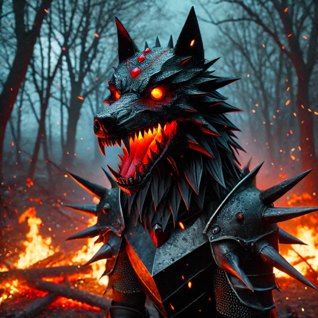 데빌의 눈은 강렬하게 빛나며, 적을 공포에 떨게 합니다. - 검은 갑옷과 문양